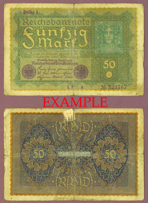 Very Good or Better - #66 Mid size note 6" X 4" 24-6-1919 - Front is green on light brown underprint with purple seals and serial numbers. Back is brown and blue.