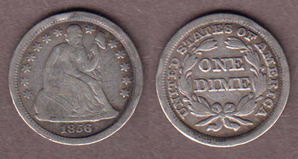 1856 10c US seated Liberty silver dime