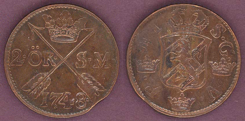 Item Number: SWE-39 Very Fine - #437 Copper - Cleaned at one time with an as made small planchet clip @ 5:00. Larger than a half dollar and very thick. Ruler Frederick I 1720-1751.$60.00