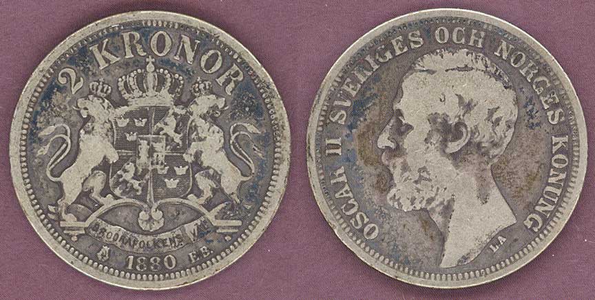 Item Number: SWE-29 Fine+ 1880 EB #749 .800 Silver - Made only 2 years 1878 & 1880. Ruler Oscar II 1872-1907.$100.00