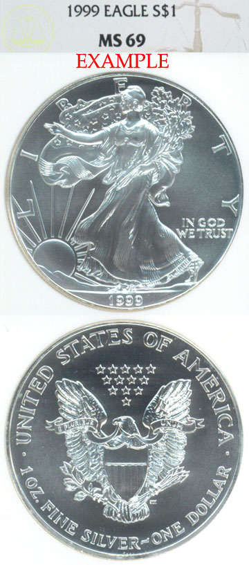NGC MS-69 - 1 ounce .999% PURE SILVER 40.6 mm Mintage of 9,133,000