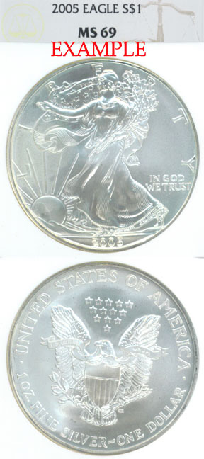 Item Number: SE-76E NGC - MS69 - Bright, white and very clean for such a large coin. 1oz .999% PURE SILVER 40.6 mm. Mintage of 8,891,025$70.00